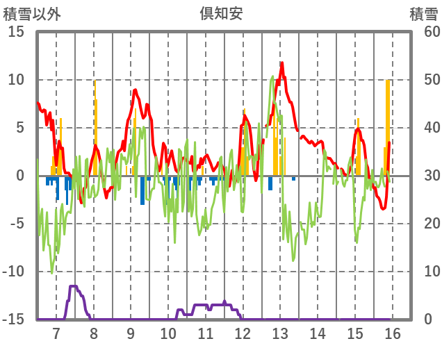 | 日 | 時 | 気温 | 降水 | 風向/風速 | 日照 | 積雪 | 降雪 |