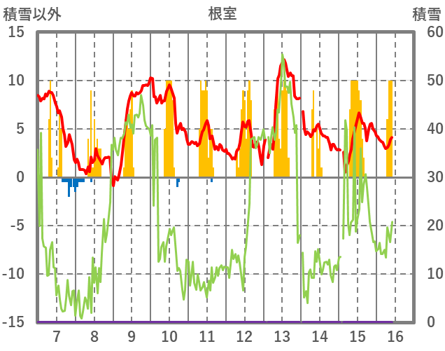 | 日 | 時 | 気温 | 降水 | 風向/風速 | 日照 | 積雪 | 降雪 |
