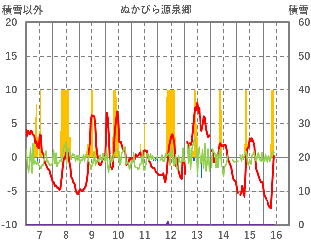 | 日 | 時 | 気温 | 降水 | 風向/風速 | 日照 | 積雪 | 降雪 |
