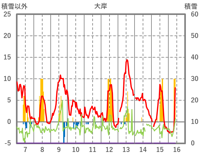 | 日 | 時 | 気温 | 降水 | 風向/風速 | 日照 | 積雪 | 降雪 |