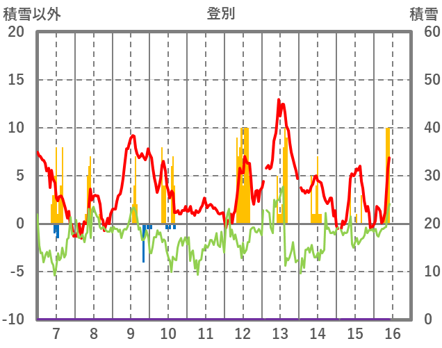| 日 | 時 | 気温 | 降水 | 風向/風速 | 日照 | 積雪 | 降雪 |