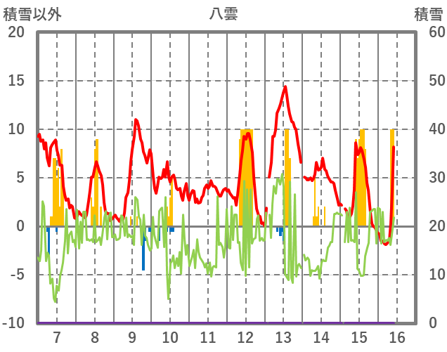 | 日 | 時 | 気温 | 降水 | 風向/風速 | 日照 | 積雪 | 降雪 |
