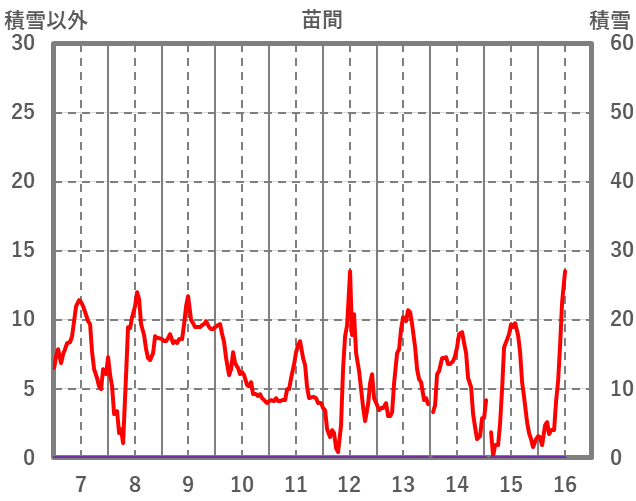 | 日 | 時 | 気温 | 降水 | 風向/風速 | 日照 | 積雪 | 降雪 |