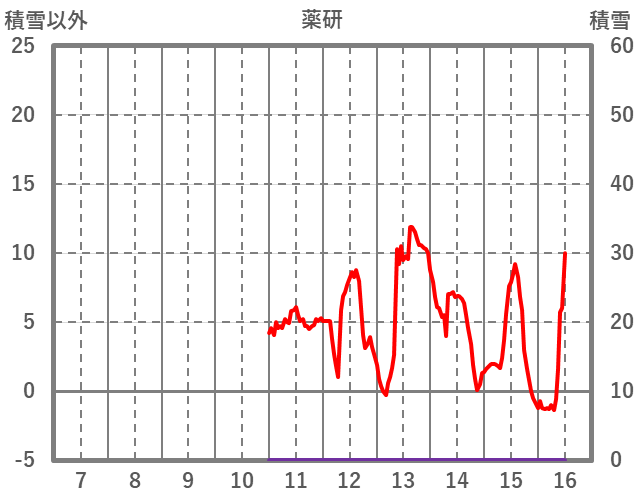 | 日 | 時 | 気温 | 降水 | 風向/風速 | 日照 | 積雪 | 降雪 |
