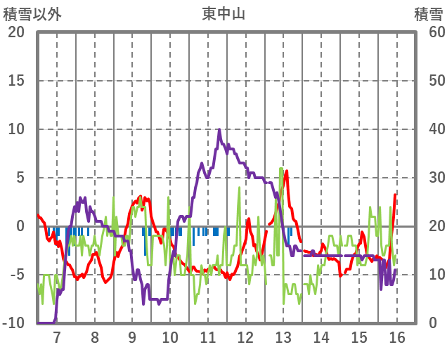 | 日 | 時 | 気温 | 降水 | 風向/風速 | 日照 | 積雪 | 降雪 |