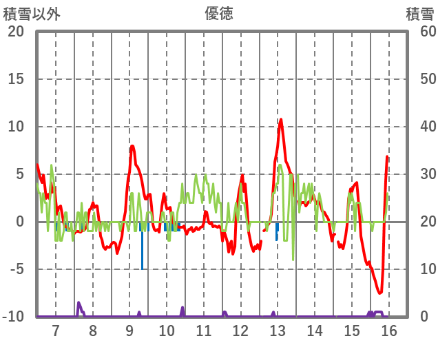 | 日 | 時 | 気温 | 降水 | 風向/風速 | 日照 | 積雪 | 降雪 |