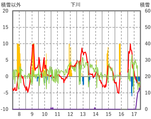 | 日 | 時 | 気温 | 降水 | 風向/風速 | 日照 | 積雪 | 降雪 |