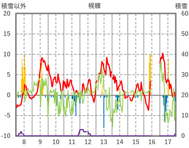 | 日 | 時 | 気温 | 降水 | 風向/風速 | 日照 | 積雪 | 降雪 |