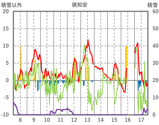 | 日 | 時 | 気温 | 降水 | 風向/風速 | 日照 | 積雪 | 降雪 |