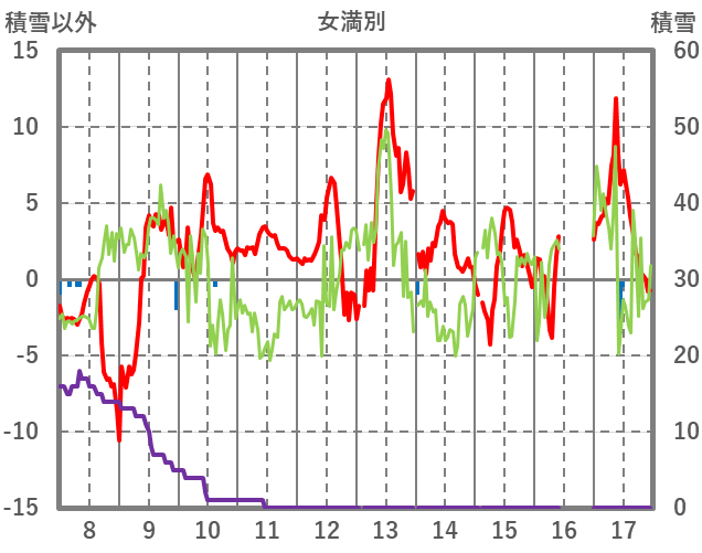 | 日 | 時 | 気温 | 降水 | 風向/風速 | 日照 | 積雪 | 降雪 |