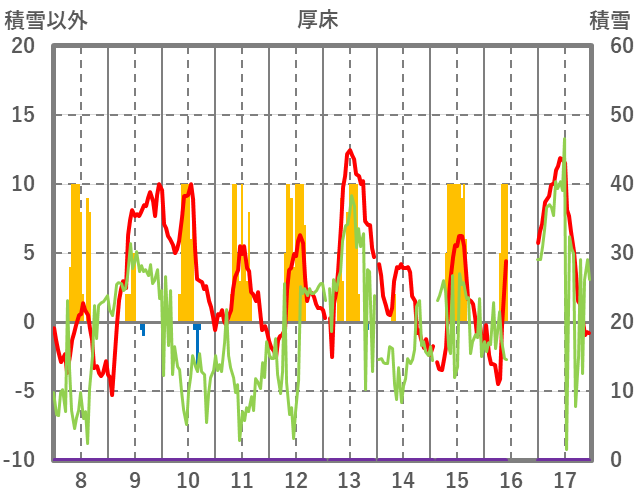 | 日 | 時 | 気温 | 降水 | 風向/風速 | 日照 | 積雪 | 降雪 |