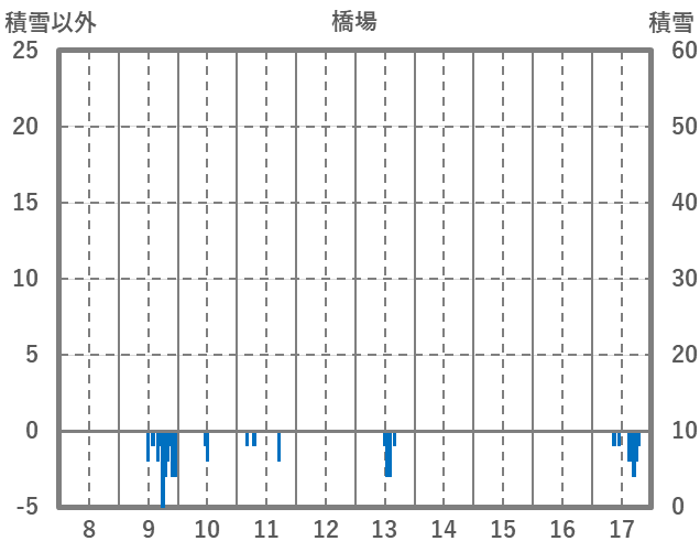 | 日 | 時 | 気温 | 降水 | 風向/風速 | 日照 | 積雪 | 降雪 |