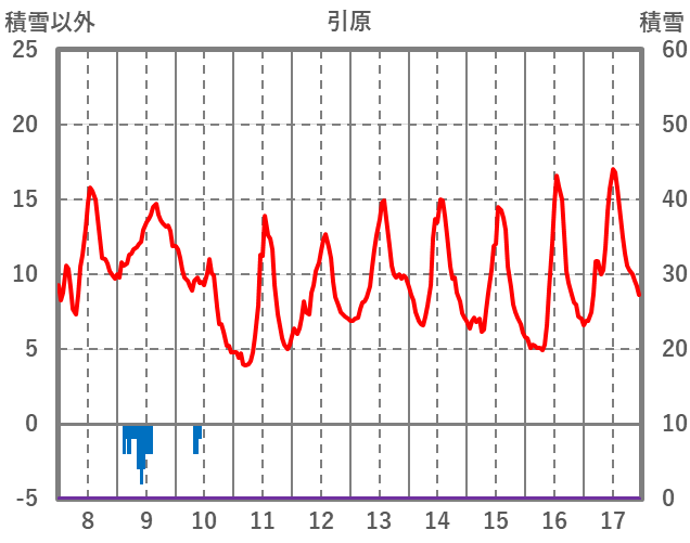 | 日 | 時 | 気温 | 降水 | 風向/風速 | 日照 | 積雪 | 降雪 |