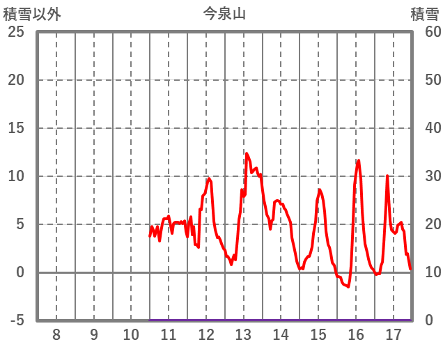 | 日 | 時 | 気温 | 降水 | 風向/風速 | 日照 | 積雪 | 降雪 |