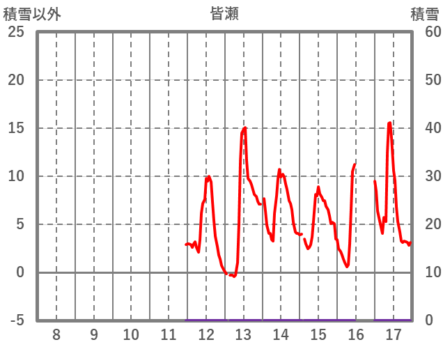 | 日 | 時 | 気温 | 降水 | 風向/風速 | 日照 | 積雪 | 降雪 |