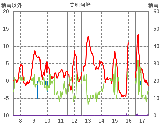 | 日 | 時 | 気温 | 降水 | 風向/風速 | 日照 | 積雪 | 降雪 |
