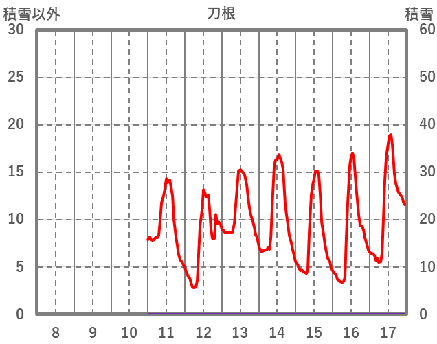 | 日 | 時 | 気温 | 降水 | 風向/風速 | 日照 | 積雪 | 降雪 |