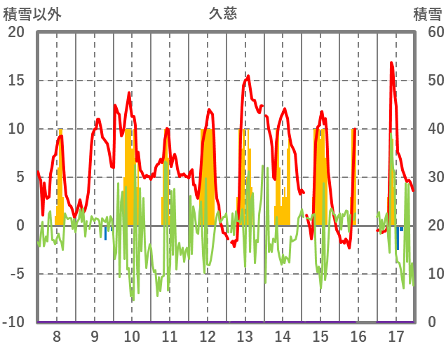 | 日 | 時 | 気温 | 降水 | 風向/風速 | 日照 | 積雪 | 降雪 |