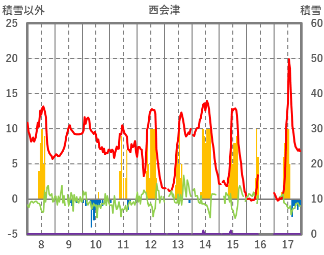 | 日 | 時 | 気温 | 降水 | 風向/風速 | 日照 | 積雪 | 降雪 |