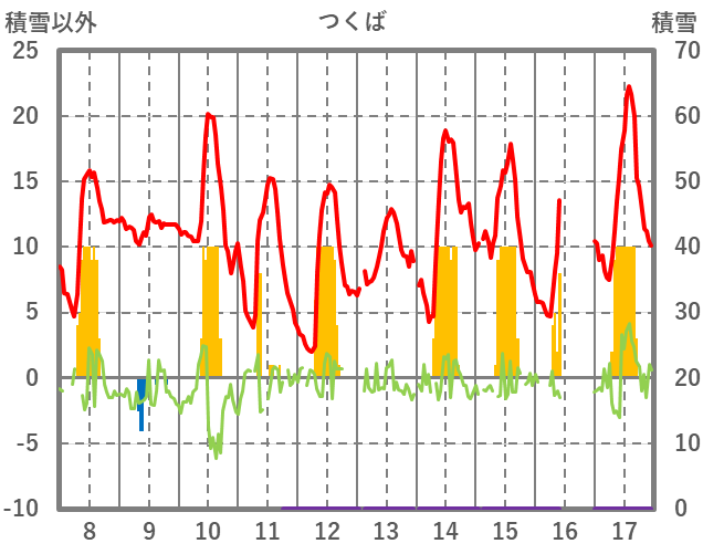 | 日 | 時 | 気温 | 降水 | 風向/風速 | 日照 | 積雪 | 降雪 |
