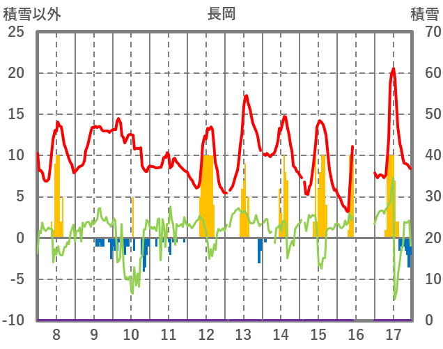 | 日 | 時 | 気温 | 降水 | 風向/風速 | 日照 | 積雪 | 降雪 |