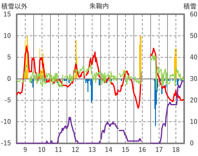 | 日 | 時 | 気温 | 降水 | 風向/風速 | 日照 | 積雪 | 降雪 |