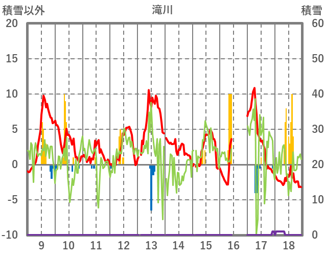 | 日 | 時 | 気温 | 降水 | 風向/風速 | 日照 | 積雪 | 降雪 |