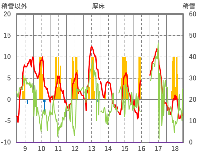 | 日 | 時 | 気温 | 降水 | 風向/風速 | 日照 | 積雪 | 降雪 |