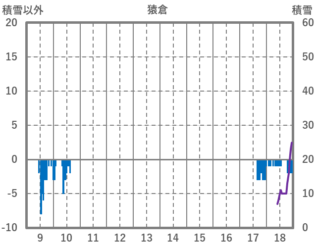 | 日 | 時 | 気温 | 降水 | 風向/風速 | 日照 | 積雪 | 降雪 |