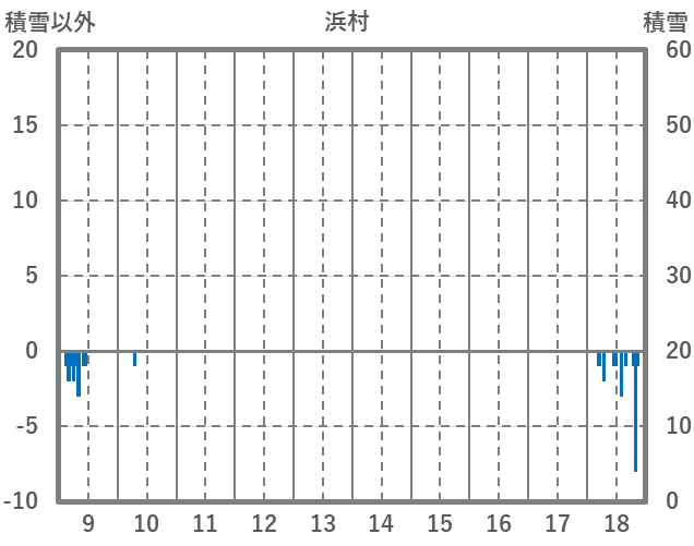 | 日 | 時 | 気温 | 降水 | 風向/風速 | 日照 | 積雪 | 降雪 |