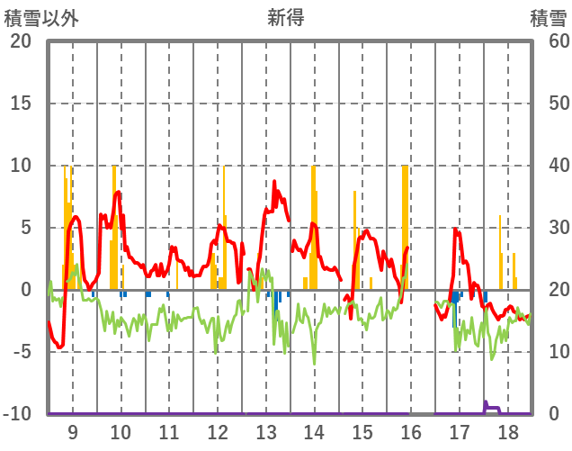 | 日 | 時 | 気温 | 降水 | 風向/風速 | 日照 | 積雪 | 降雪 |