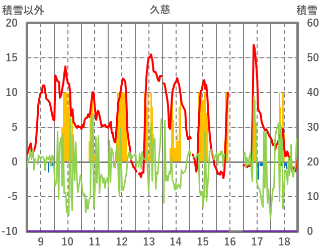 | 日 | 時 | 気温 | 降水 | 風向/風速 | 日照 | 積雪 | 降雪 |