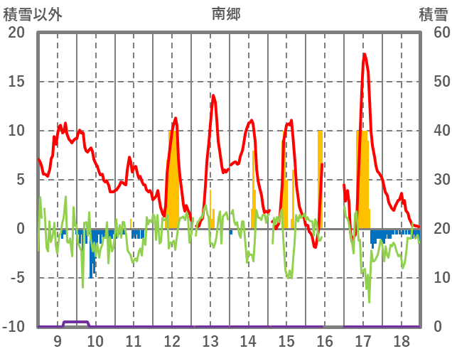 | 日 | 時 | 気温 | 降水 | 風向/風速 | 日照 | 積雪 | 降雪 |