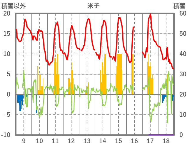 | 日 | 時 | 気温 | 降水 | 風向/風速 | 日照 | 積雪 | 降雪 |