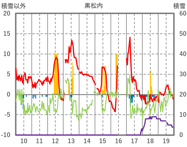 | 日 | 時 | 気温 | 降水 | 風向/風速 | 日照 | 積雪 | 降雪 |