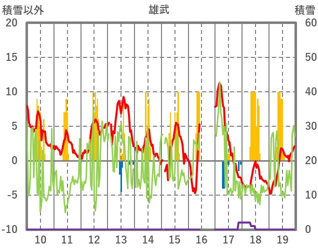 | 日 | 時 | 気温 | 降水 | 風向/風速 | 日照 | 積雪 | 降雪 |