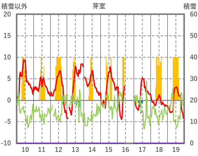 | 日 | 時 | 気温 | 降水 | 風向/風速 | 日照 | 積雪 | 降雪 |