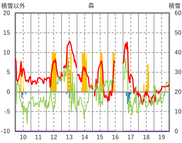| 日 | 時 | 気温 | 降水 | 風向/風速 | 日照 | 積雪 | 降雪 |