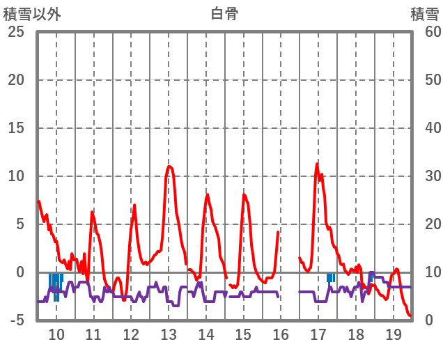 | 日 | 時 | 気温 | 降水 | 風向/風速 | 日照 | 積雪 | 降雪 |
