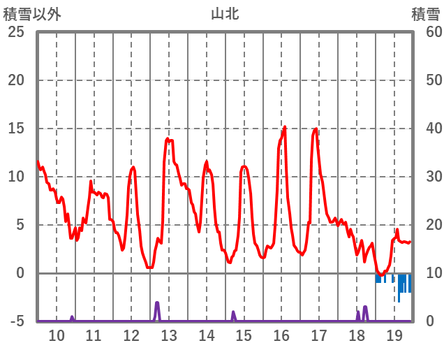 | 日 | 時 | 気温 | 降水 | 風向/風速 | 日照 | 積雪 | 降雪 |