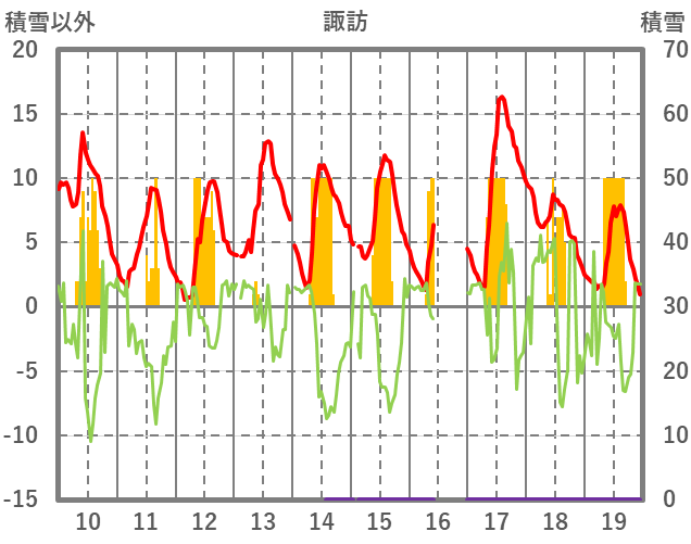 | 日 | 時 | 気温 | 降水 | 風向/風速 | 日照 | 積雪 | 降雪 |