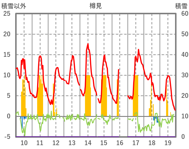 | 日 | 時 | 気温 | 降水 | 風向/風速 | 日照 | 積雪 | 降雪 |