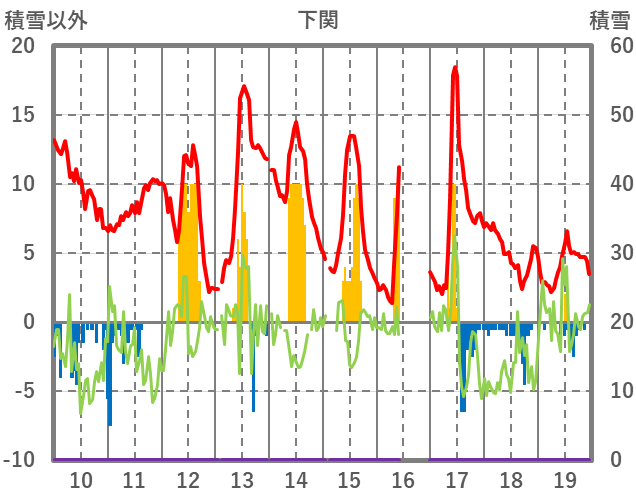 | 日 | 時 | 気温 | 降水 | 風向/風速 | 日照 | 積雪 | 降雪 |