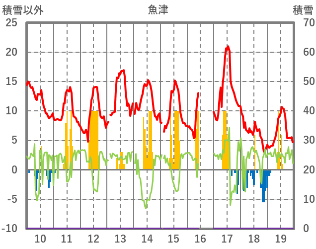 | 日 | 時 | 気温 | 降水 | 風向/風速 | 日照 | 積雪 | 降雪 |