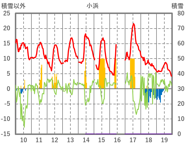 | 日 | 時 | 気温 | 降水 | 風向/風速 | 日照 | 積雪 | 降雪 |