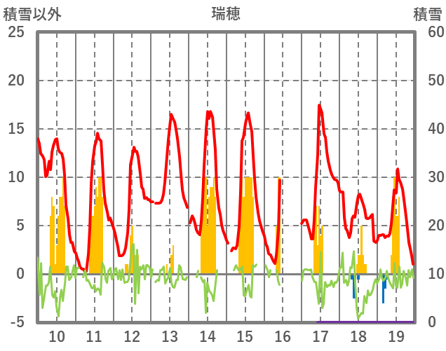 | 日 | 時 | 気温 | 降水 | 風向/風速 | 日照 | 積雪 | 降雪 |