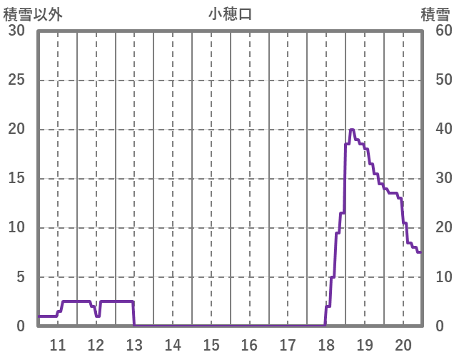 | 日 | 時 | 気温 | 降水 | 風向/風速 | 日照 | 積雪 | 降雪 |
