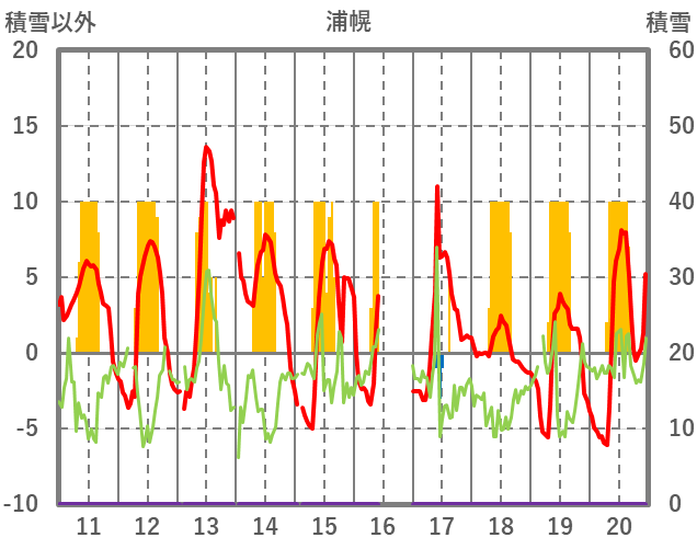 | 日 | 時 | 気温 | 降水 | 風向/風速 | 日照 | 積雪 | 降雪 |