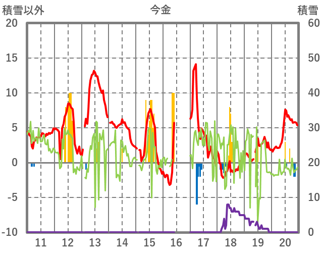 | 日 | 時 | 気温 | 降水 | 風向/風速 | 日照 | 積雪 | 降雪 |
