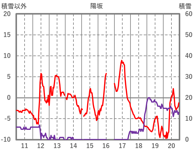 | 日 | 時 | 気温 | 降水 | 風向/風速 | 日照 | 積雪 | 降雪 |